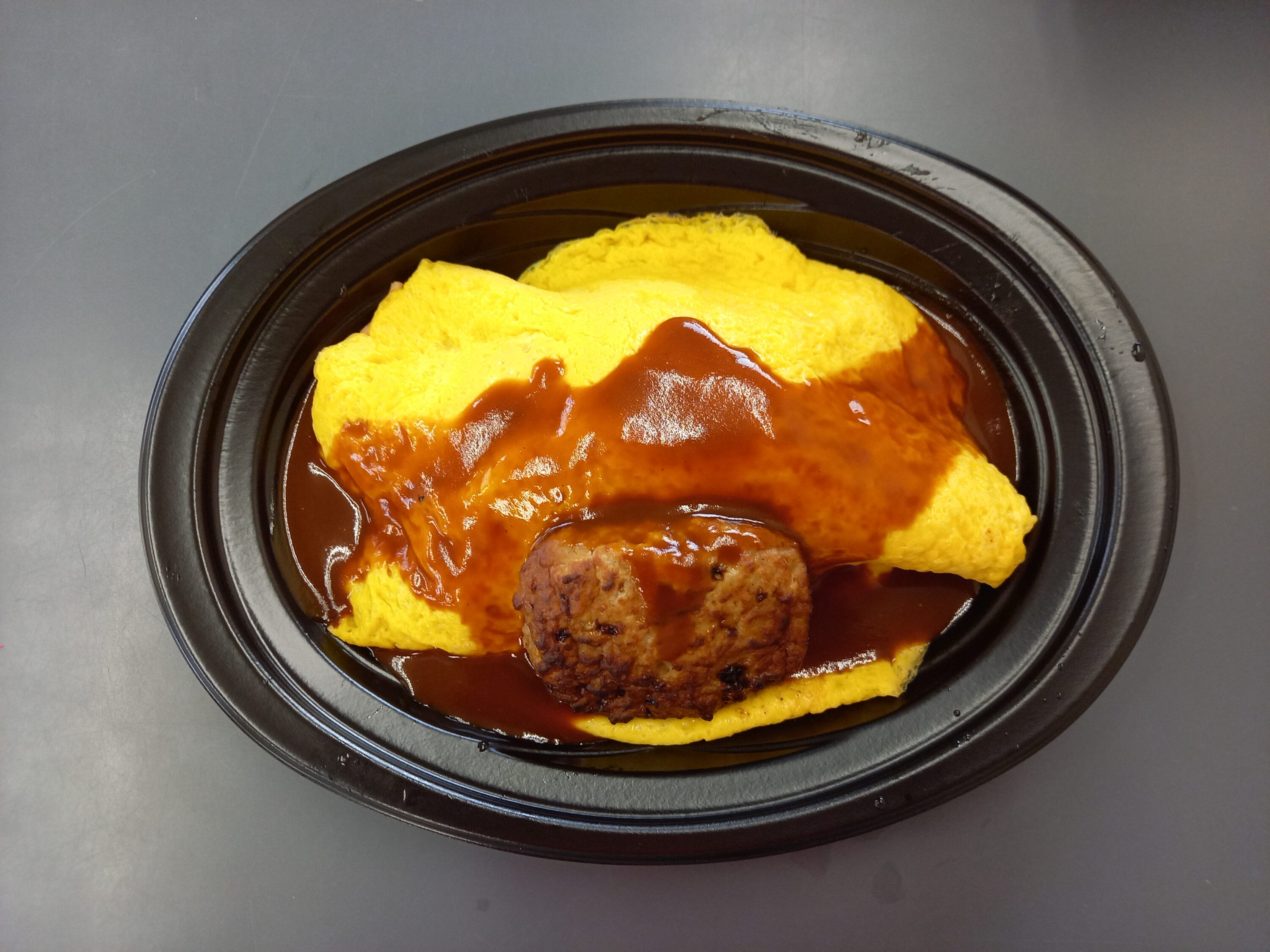 濃厚デミソースとオムライスに満足。ミニハンバーグ乗せ